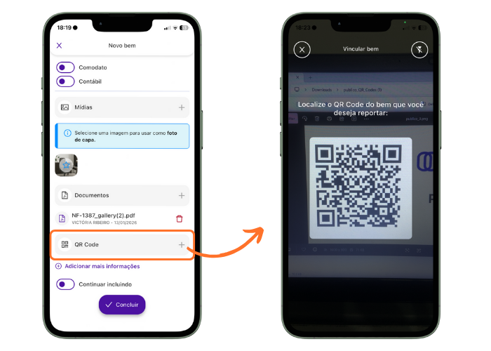 Caso você esteja realizando todas as etapas de um inventário e já esteja aplicando as plaquinhas de identificação nos bens, é possível associar um QR Code ao bem no momento da sua criação.
