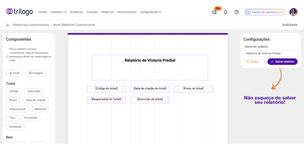 Os relatórios customizáveis do Trílogo deixam os relatórios da sua operação ainda mais personalizados. É possível adicionar logotipos, assinatura digitais, padrões a serem preenchidos e muito mais!